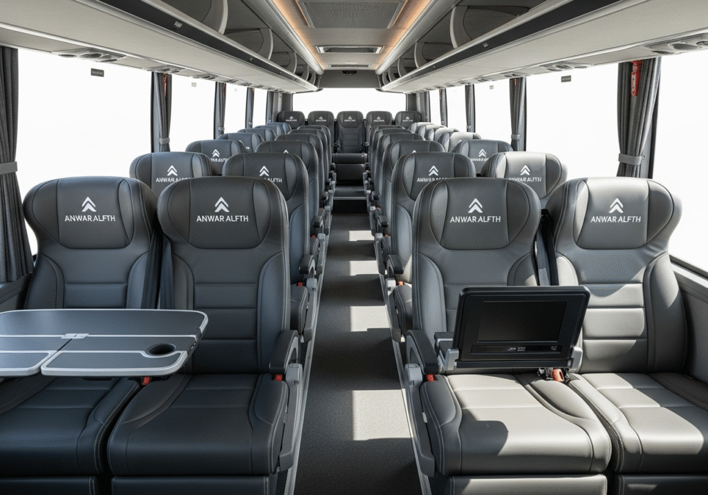 لمن يبحثون عن تجربة نقل أكثر تميزًا، نقدم خدمات النقل بالباصات الفاخرة التي تشمل باصات مزودة بمقاعد مريحة وتكييف هواء وأنظمة ترفيه. هذه الخدمة توفر مستوى عالٍ من الراحة والفخامة لضمان تجربة ممتعة.